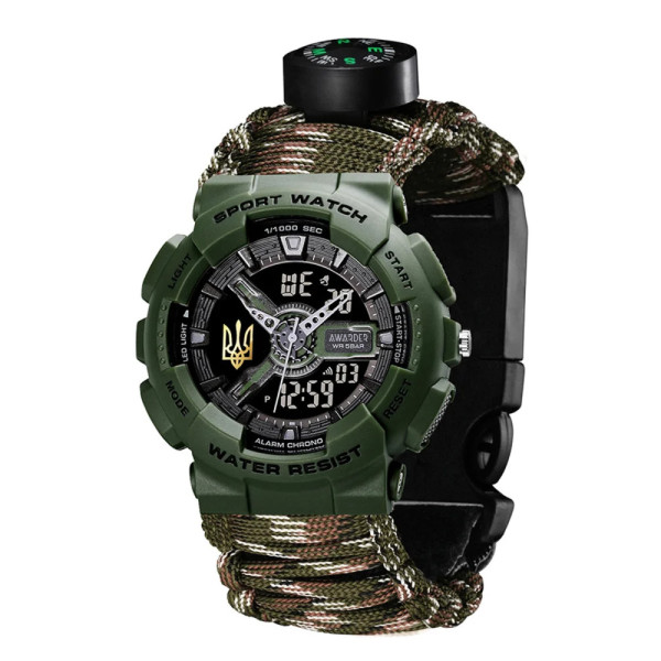 Годинник наручний Awarder 005P Тризуб золото Army Green Паракордовий ремінець Camo Green + Коробка.