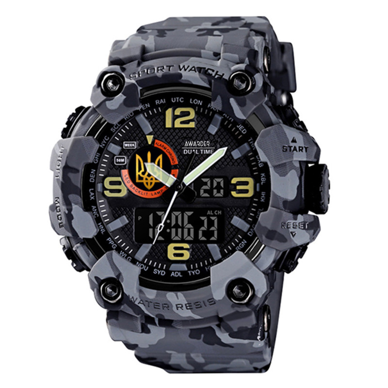 Годинник наручний Awarder 002 Тризуб золото Сірий камуфляж + Коробка.