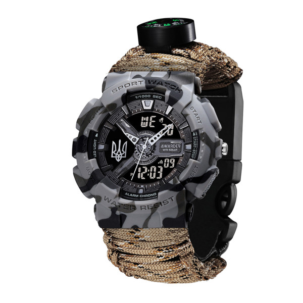 Годинник наручний Awarder 005 Тризуб срібло Сірий камуфляж Паракордовий ремінець Desert Camo + Короб
