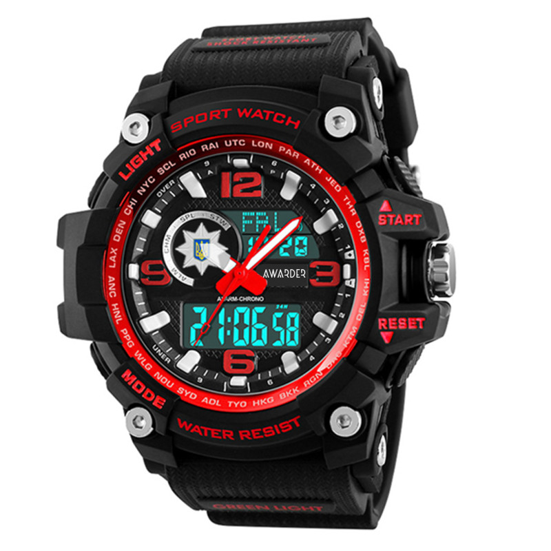 Годинник наручний Awarder 012 ДПС Чорні з червоним + Коробка