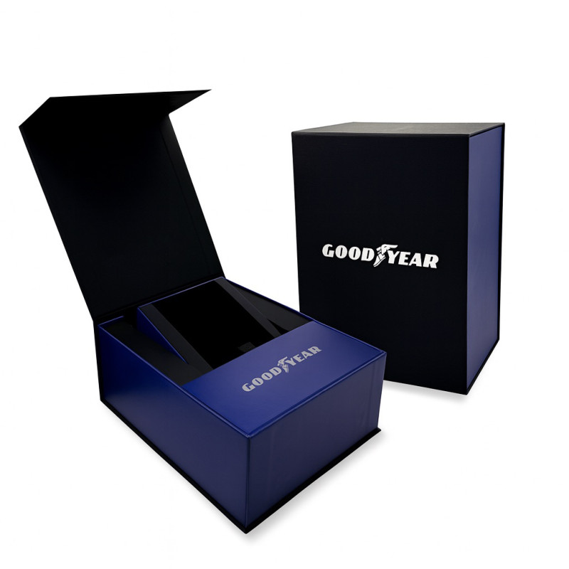 Подарункова коробка Guardo чорна-синя - це стильний та елегантний аксесуар, ідеальний для упаковки годинників, браслетів та інших ювелірних виробів. Виготовлена з високоякісного структурованого картону, вона поєднує в собі класичний чорний колір з елегантним синім акцентом, що надає їй розкішного вигляду.