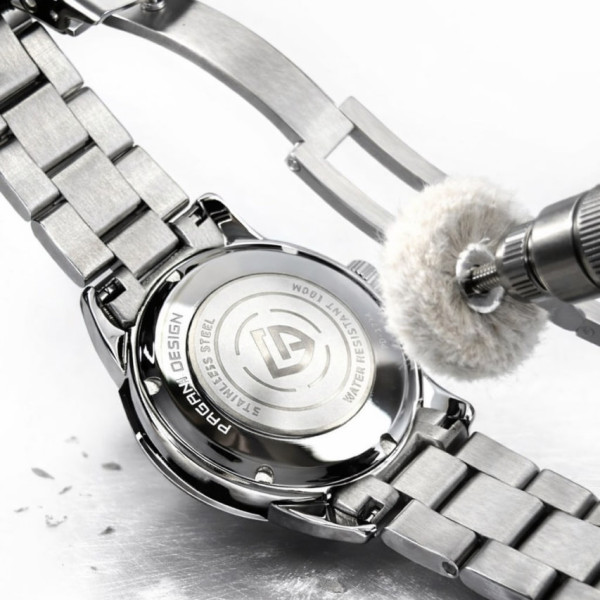 Полірування задньої кришки годинника - це необхідна процедура для відновлення естетичного вигляду та гігієнічності аксесуара. У процесі експлуатації на металевій поверхні неминуче з’являються подряпини від контакту з пилом, манжетами одягу або твердими поверхнями. Професійна обробка дозволяє повністю усунути мікропошкодження, потертості та окислення, повертаючи деталі заводський блиск або матову текстуру. Наші майстри використовують спеціалізовані пасти різної зернистості та професійне обладнання, що гарантує делікатне зняття мінімального шару металу без пошкодження серійних номерів, гравіювання та логотипів бренду.